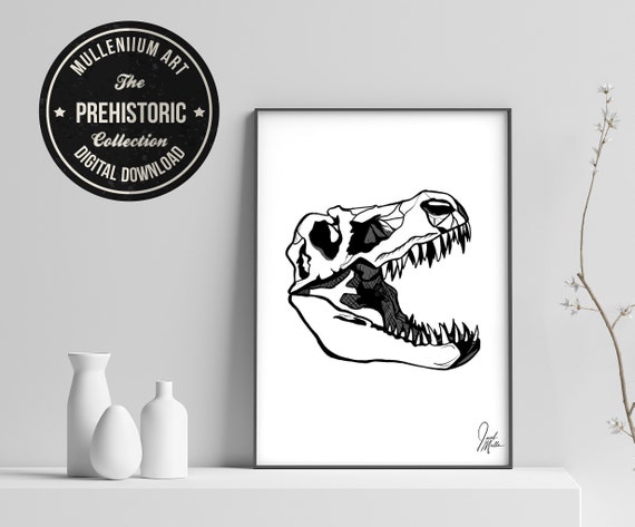 T Rex Dinosaur Print Tyrannosaurus Rex Skull Wall Art Etsy